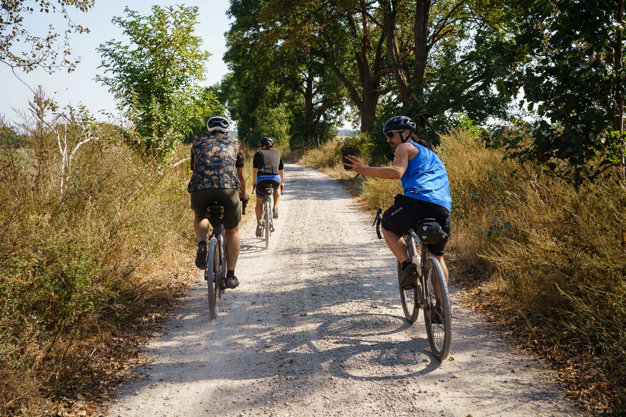 Die schnelle Gruppe fährt Tempo, die andere fährt Samstag. Irgendwo dazwischen steht ein Cargogravelbike am Wegesrand, darauf eine Küchenbox, darin ein Gaskocher. Das Wasser ist schon heiß.